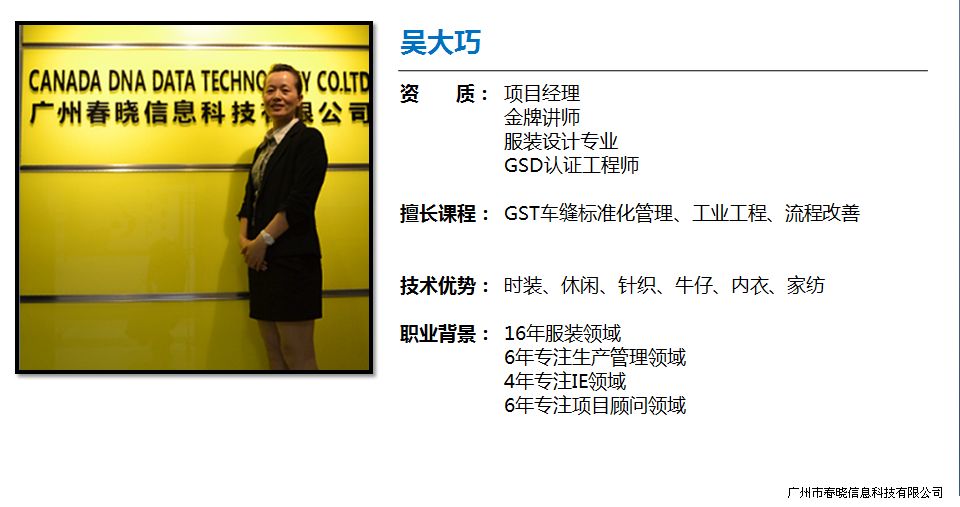 谈到GST,首先就得对它有 大概了解。所谓的GST即Internet Garment Time Measurement的英文缩写,中文意思是通用车缝时间,是一种专为缝制行业而设计的方法分析、时间研究的一门技术,它以 正常的速度、正确的方法,制定出 合理的时间,即标准时间。它就是我们今年会公司创立的一套国际公认的预定动作时间系统。